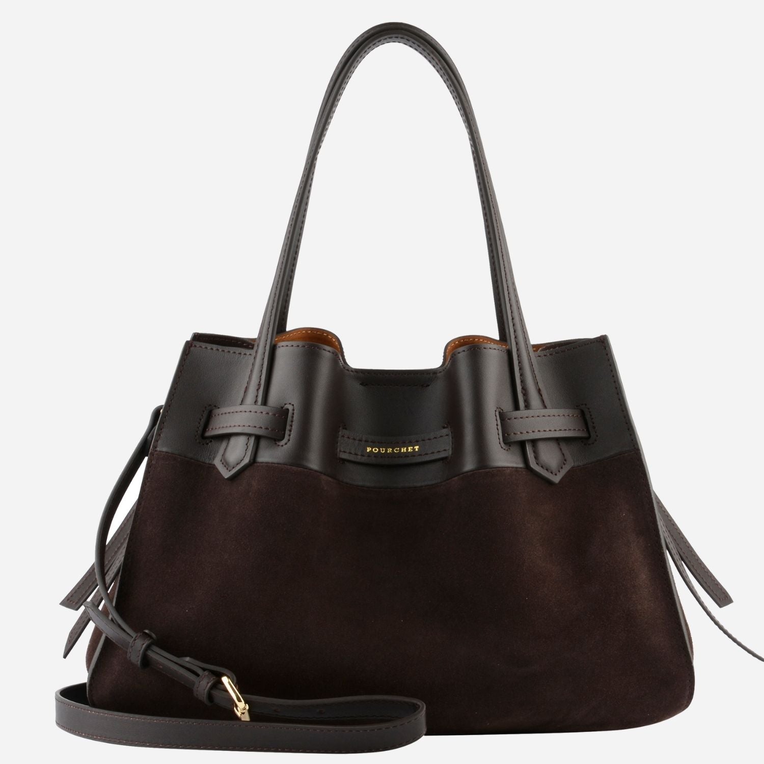 Mørkebrun ruskinds taske fra Pourchet Paris.