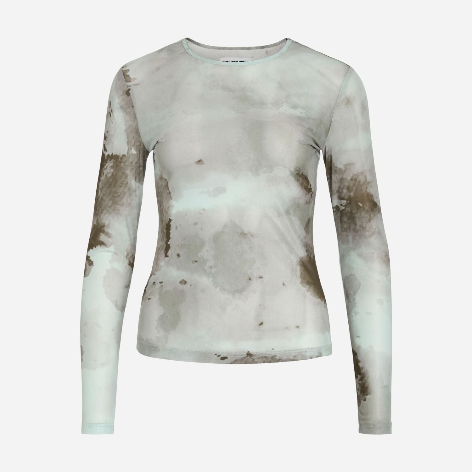 Smuk elastik mesh bluse fra i blå/grøn fra Rouge Edit