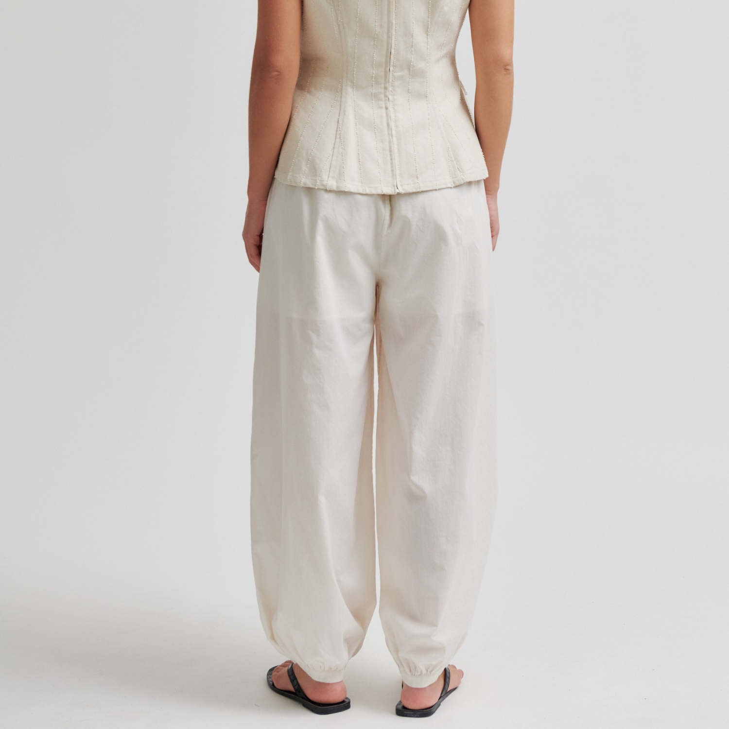 - Fast linning i taljen foran med snøre og elastik bagpå