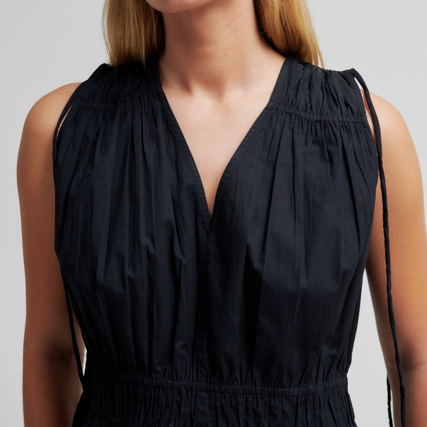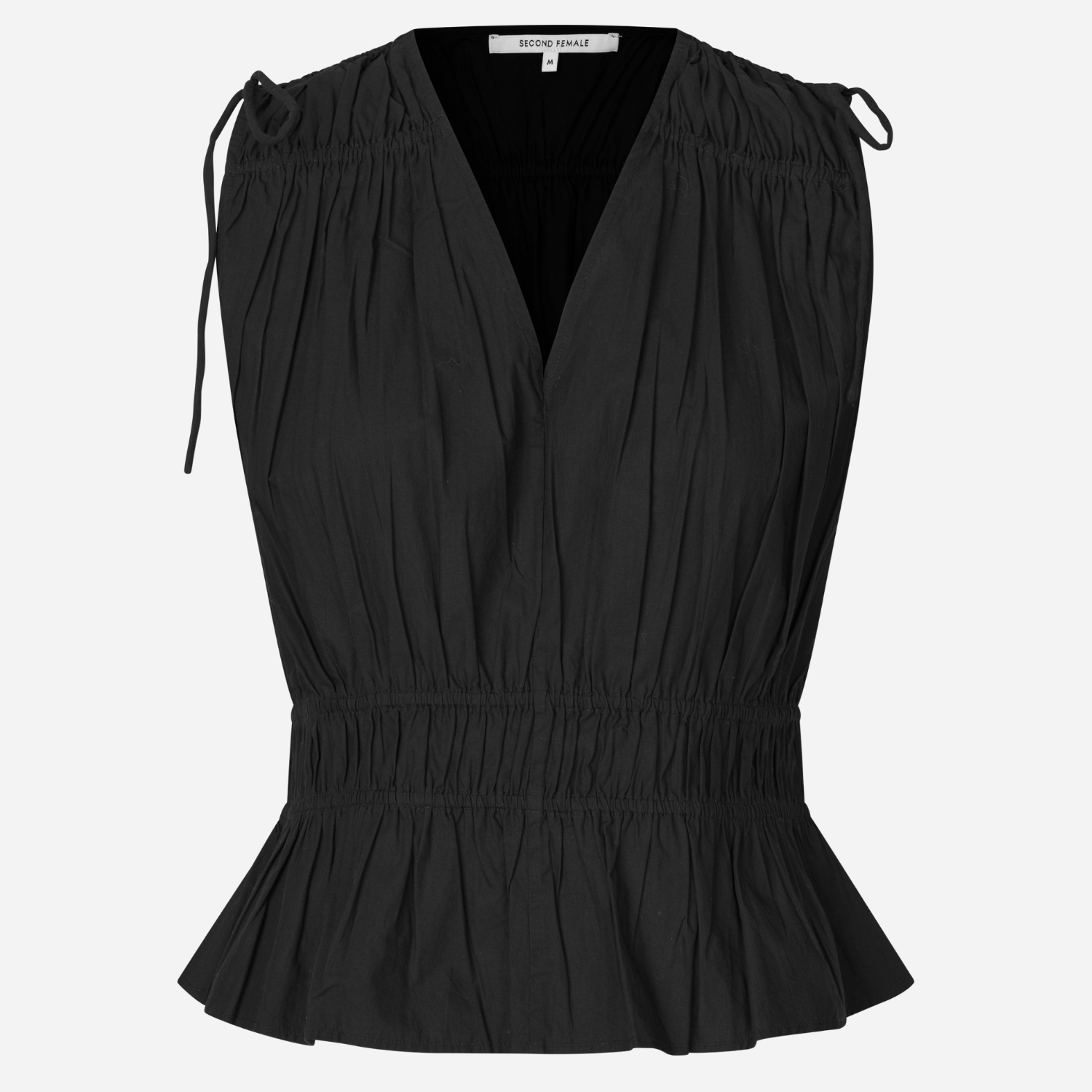 Smuk sort ærmeløs top fra Second Female med smock detaljer.