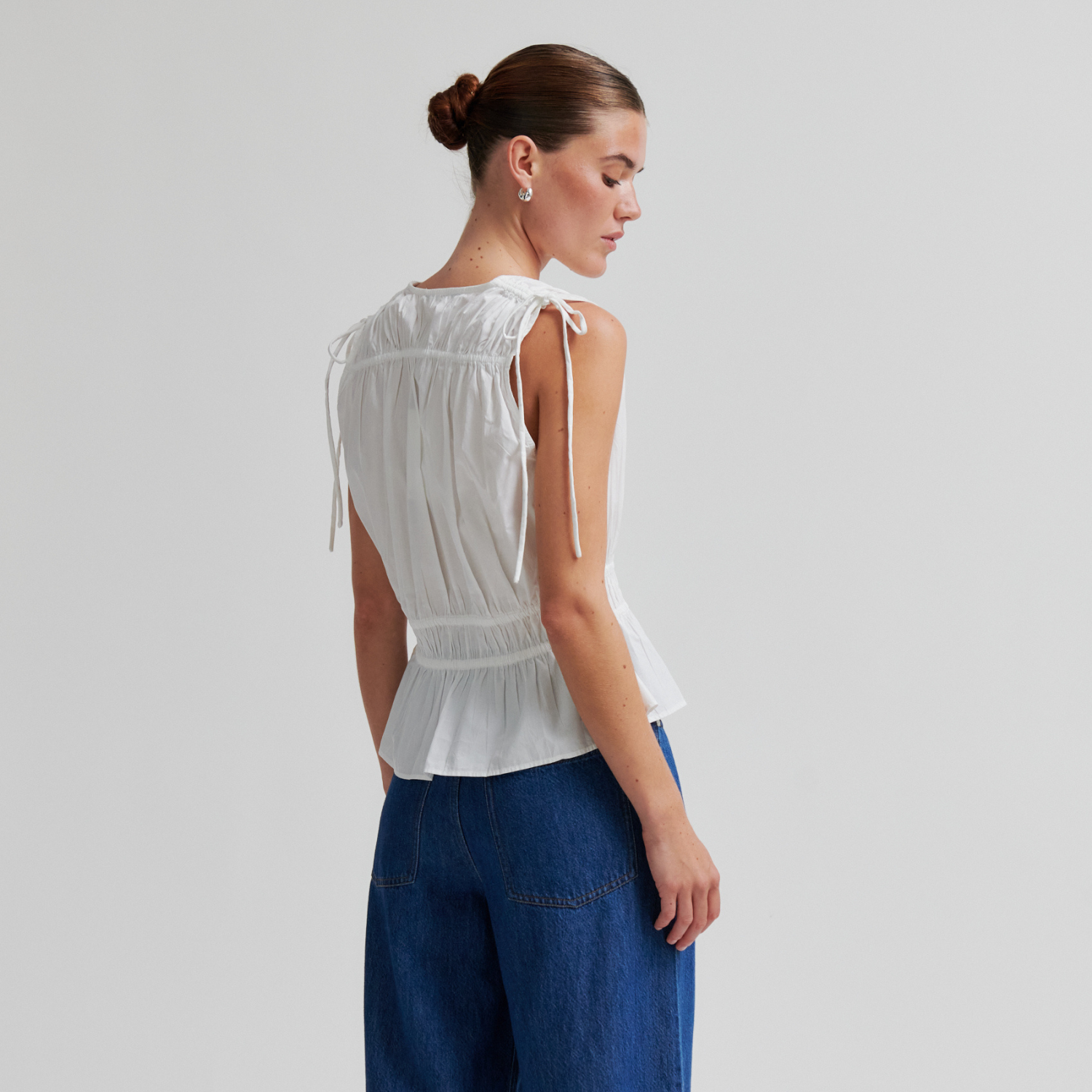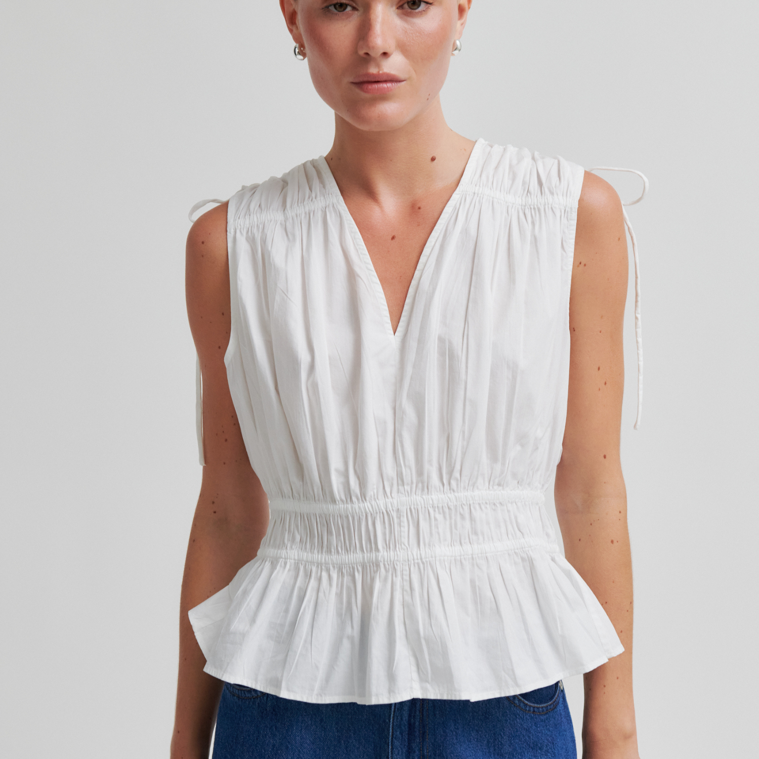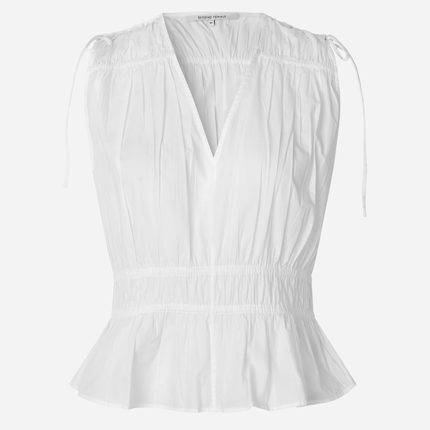 Smuk hvid ærmeløs top fra Second Female med smock detaljer.