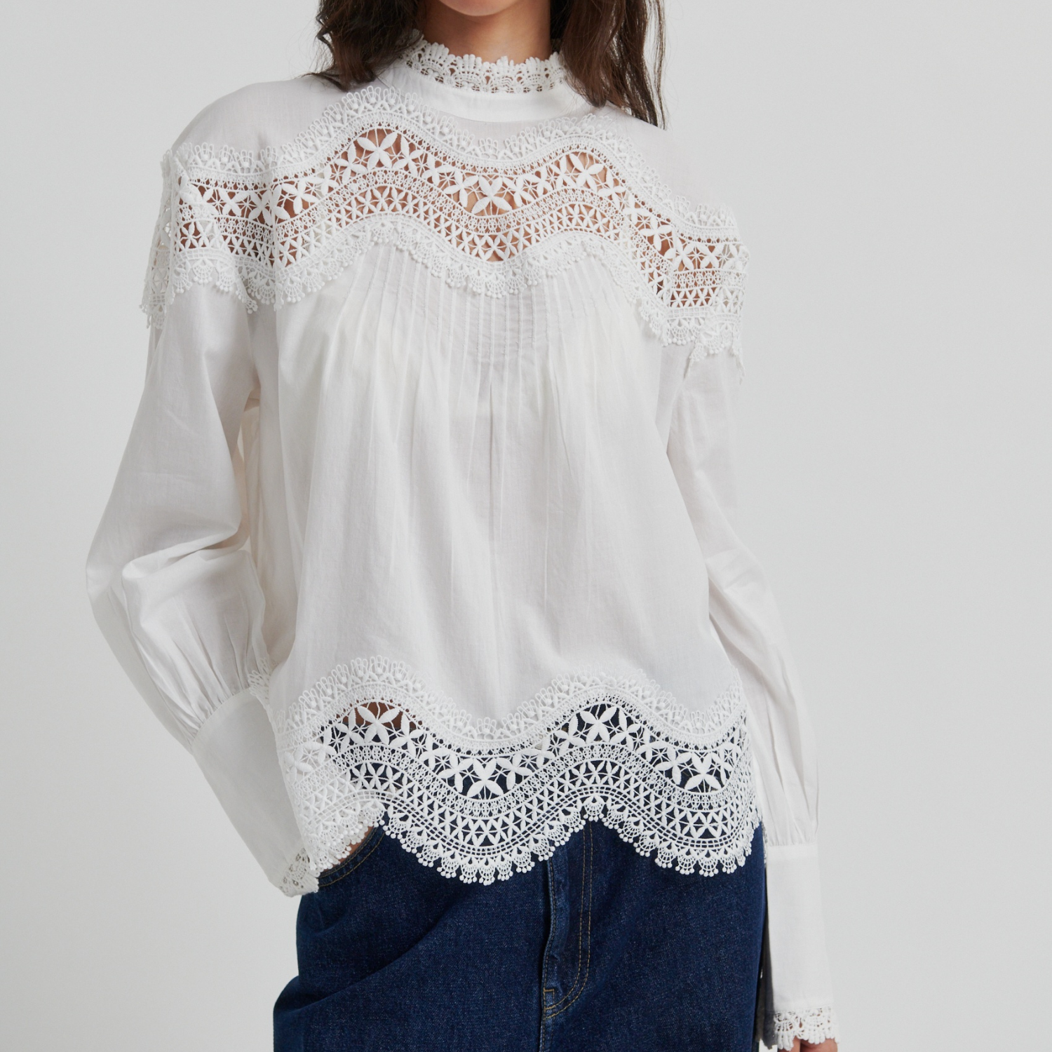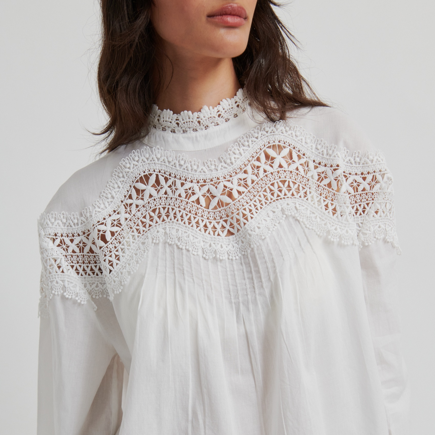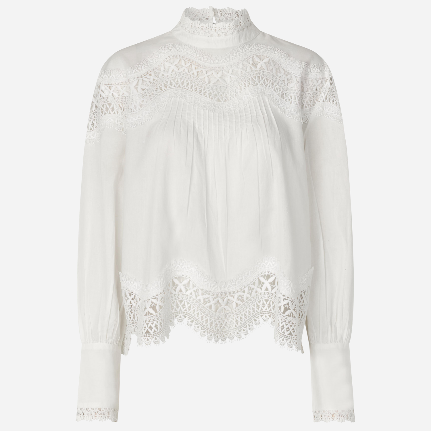 • Lange ærmer ned knapafslutning i blonde