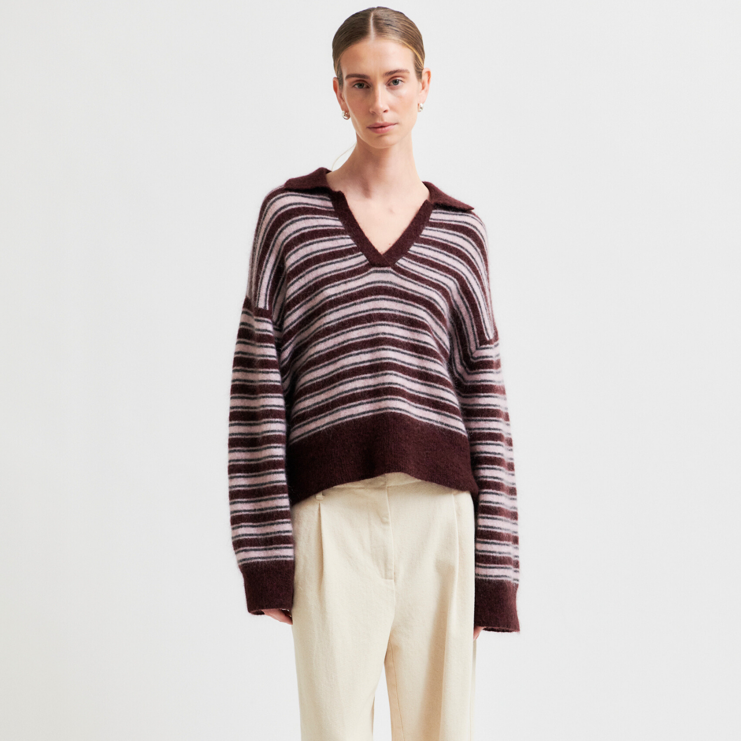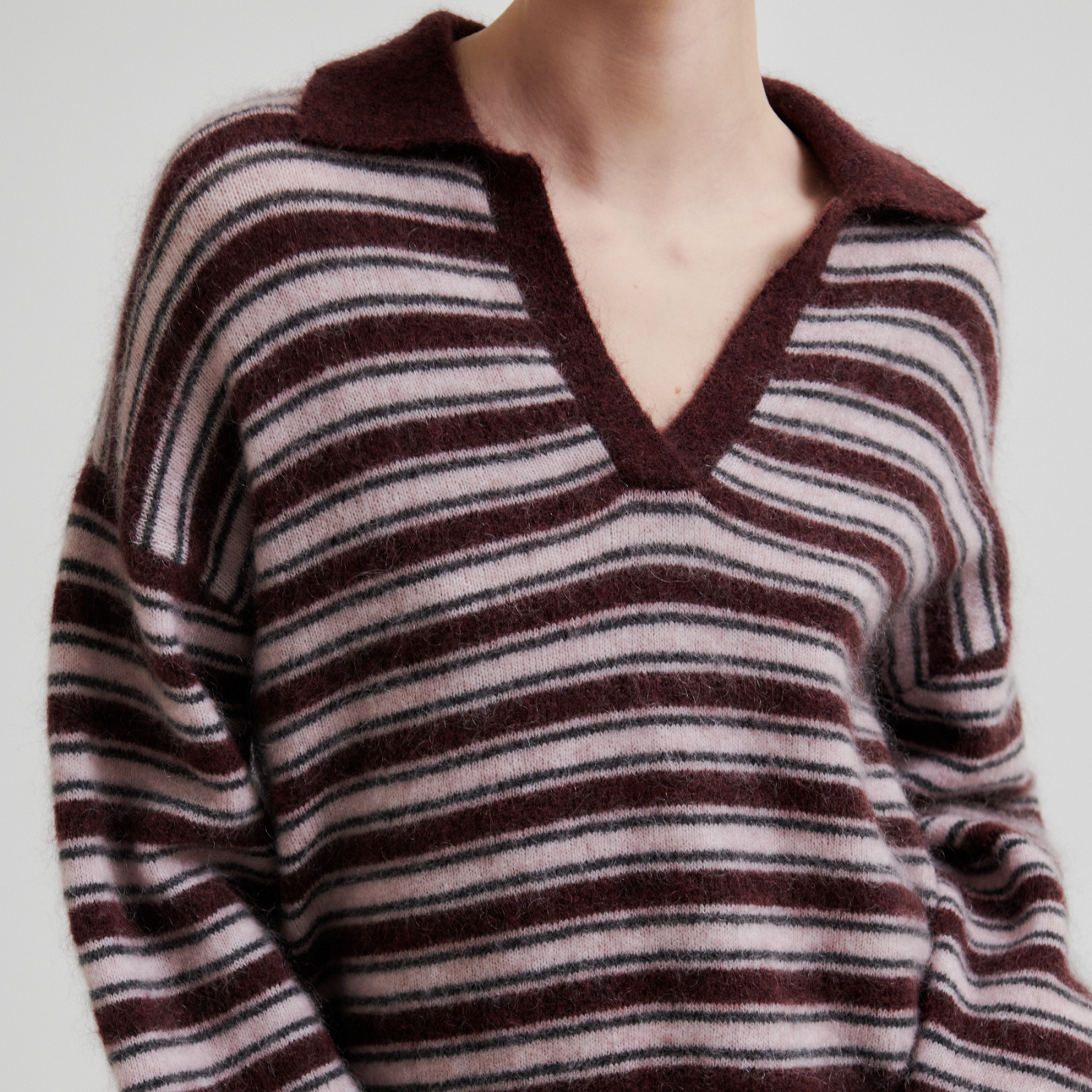 Stribet strik i polo design fra Second Female.
